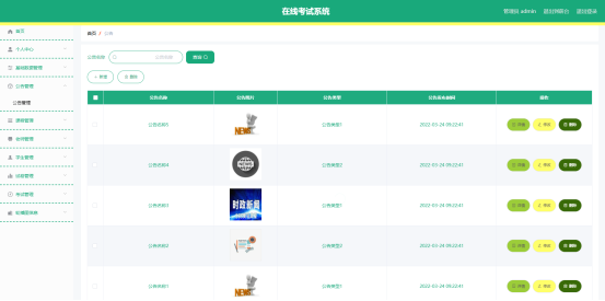 在线考试系统针对管理员设置的功能有:添加并管理各种类型信息,管理用户账户信息,管理试卷信息,管理公告信息等内容。
