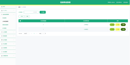 公告类型管理页面显示所有公告类型,在此页面既可以让管理员添加新的公告信息类型,也能对已有的公告类型信息执行编辑更新,失效的公告类型信息也能让管理员快速删除。下图就是公告类型管理页面。