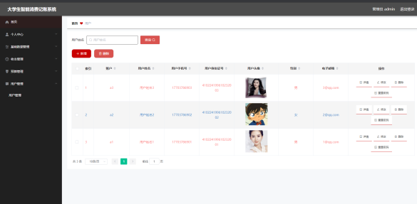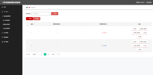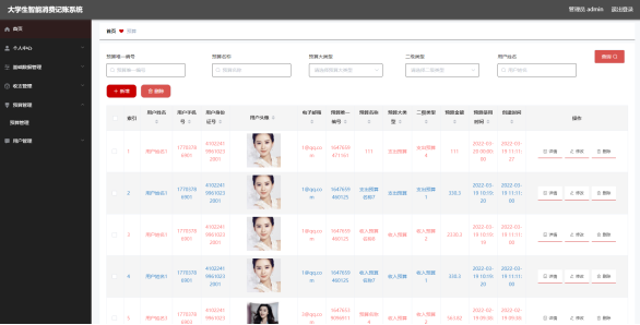大学生智能消费记账系统管理员可以管理用户的基本信息,可以管理预算信息,可以管理预算信息等。