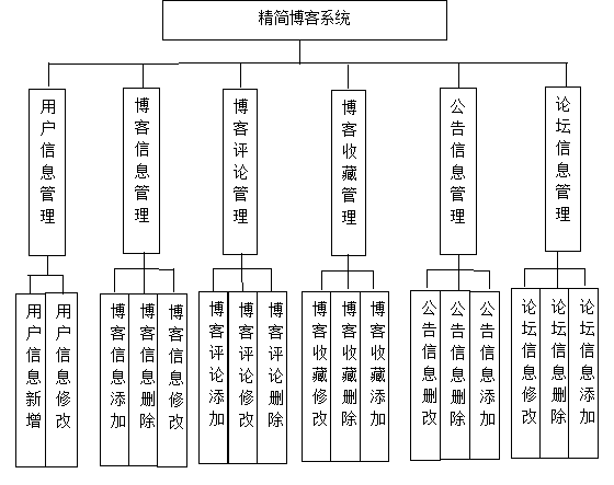 系统的总体功能设计,是需求分析的下一个阶段,是系统实现的上一个阶段,它是系统详细功能设计的一个大方向,也就是说系统的各类子功能模块的设计,都是以总体功能设计为目标而进行的。通过对系统进行需求分析可知,可以大致了解系统具体所需要的相关功能。本系统主要的功能需求包括用户信息管理、博客信息管理、论坛信息管理等模块。本系统的总体功能设计图如图4-1所示。