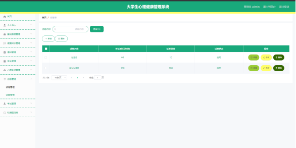 如图5.1显示的就是试卷列表页面,此页面提供给管理员的功能有:查看试卷、新增试卷、修改试卷、删除试卷等。