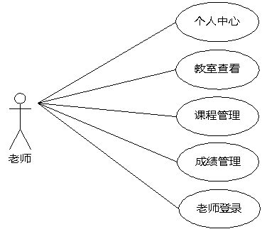 图3.6即为老师用例图,老师权限操作的功能包括查看教室,管理课程,管理选课,管理成绩等。