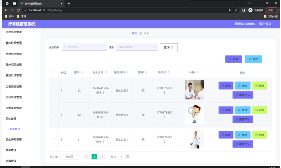 Sanatorium Management System Based on Java, SpringBoot and Vue