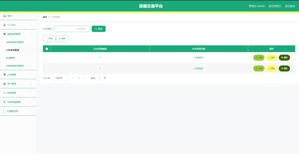 公告类型管理页面显示所有公告类型,在此页面既可以让管理员添加新的公告信息类型,也能对已有的公告类型信息执行编辑更新,失效的公告类型信息也能让管理员快速删除。下图就是公告类型管理页面。