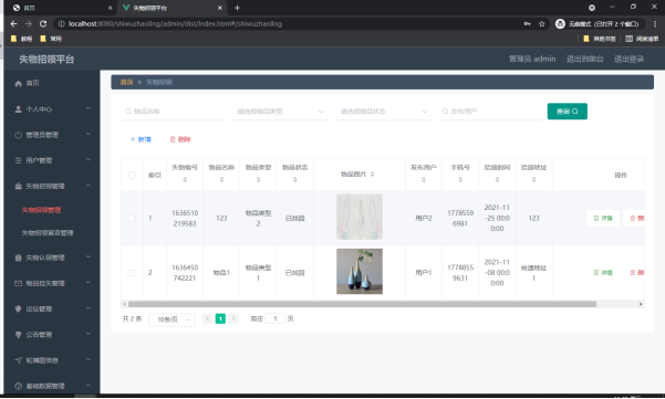 Lost and Found Management System Based on Java+SpringBoot+Vue