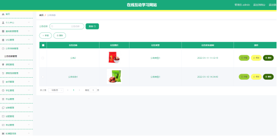 图5.3 公告信息管理页面