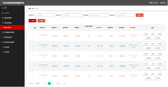 图5.2 药物信息管理页面
