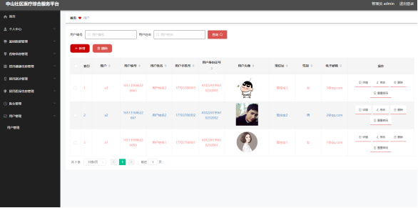 如图5.1显示的就是用户列表页面,此页面提供给管理员的功能有:查看用户、新增用户、修改用户、删除用户等。