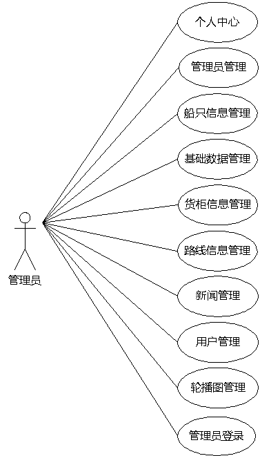 图3.5即为管理员用例图,管理员权限操作的功能包括管理用户,管理船只,管理路线,管理货柜,管理新闻等。