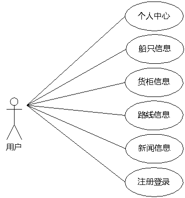 图3.6即为用户用例图,用户权限操作的功能包括查看船只,查看新闻,查看路线以及货柜信息等。