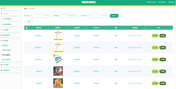 管理员可以对商品收藏进行管理,可以设置查看所有用户的收藏,可以删除某个用户的收藏。商品收藏管理界面如图5.2所示。