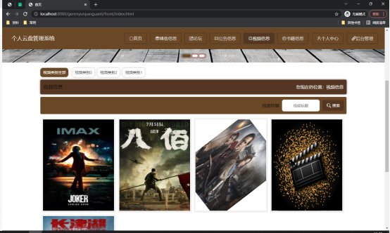 如图5.3显示的就是视频信息管理页面,此页面提供给管理员的功能有:根据视频信息进行条件查询,还可以对视频信息进行新增、修改、查询操作等等。