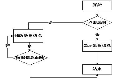 很多时候,面对系统中的大量数据,难免会发现一些错误,因此需要及时纠正错误,本系统也提供数据后期的修改功能,其流程见下图。但是更新的数据也需要通过数据有效性检验。能够最终写入数据库则说明修改的数据是符合要求的。