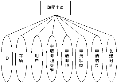 (3)使用Visio这样的常用的实体属性图绘制工具来绘制牌照申请实体属性图,绘制结果见图4-5。