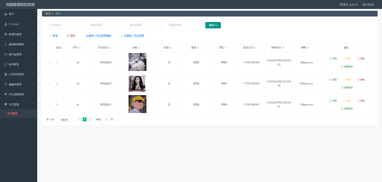 图5.2 即为编码实现的学生管理界面,管理员对学生数据可以添加,也能通过文件的形式导入学生数据。学生信息出现错误,管理员也能使用修改功能及时更正。