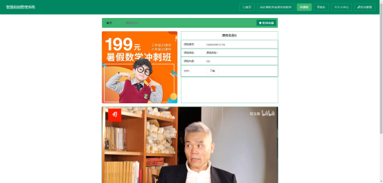 图5.9 即为编码实现的课程信息界面,用户通过课程视频学习课程知识,可以下载课程课件,可以在课程信息界面下方的留言区域发布课程留言,可以可以收藏本界面的课程。