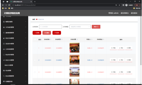 图5.2 校友分会管理页面