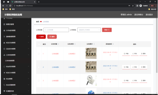 图5.4 公告信息管理页面