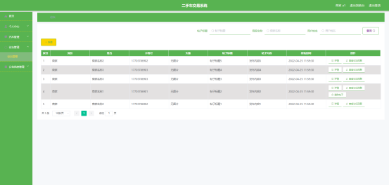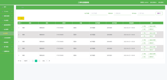图5.5 即为编码实现的汽车留言管理界面,汽车留言内容是用户发布的信息,而汽车的回复内容是商家的回复信息。