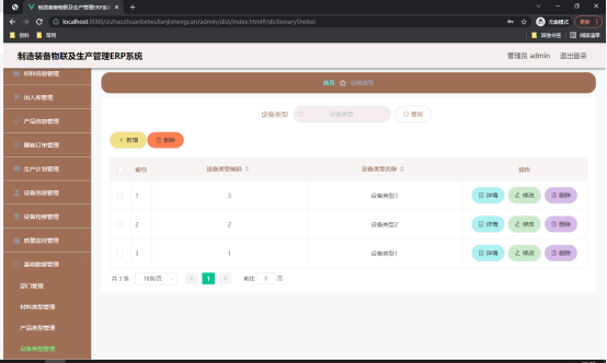 如图5.4显示的就是设备类型管理页面,此页面提供给管理员的功能有:根据设备类型进行新增、修改、查询操作等等。