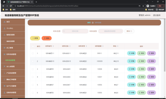 图5.2 材料信息管理页面