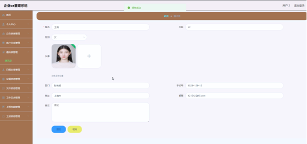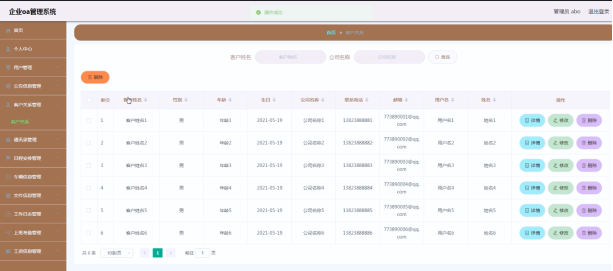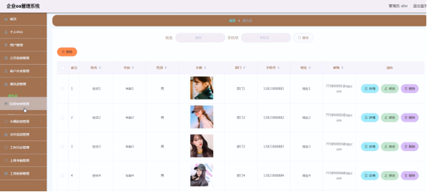 企业OA管理系统的系统管理员可以用户教师,可以对用户信息修改删除以及查询操作。具体界面的展示如图5.1所示。