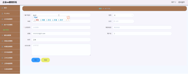 用户可以对客户关系进行添加修改删除。界面如下图所示:
