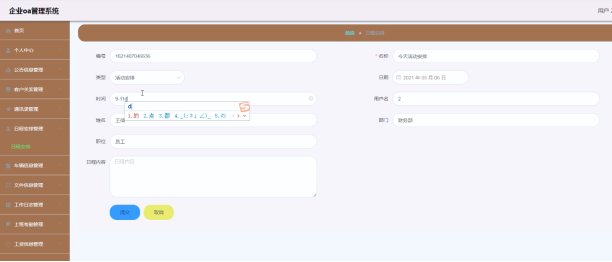 用户可以对日程安排进行添加修改删除操作。界面如下图所示:
