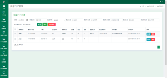 图5.9 健康日记管理页面