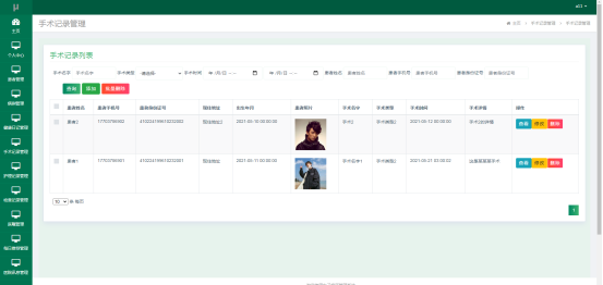 医生进入指定功能操作区之后管理手术记录信息。其页面见下图。医生增删改查患者的手术记录信息。