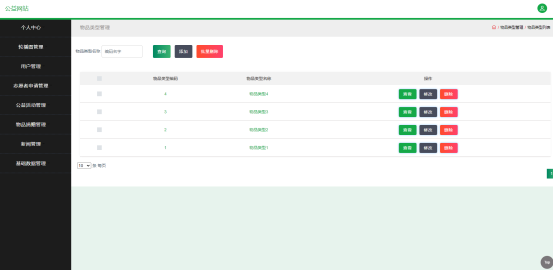 如图5.4显示的就是物品类型管理页面,此页面提供给管理员的功能有:新增物品类型,修改物品类型,删除物品类型。