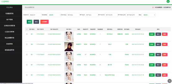 如图5.3显示的就是物品捐赠管理页面,此页面提供给管理员的功能有:新增物品捐赠,修改物品捐赠,删除物品捐赠。
