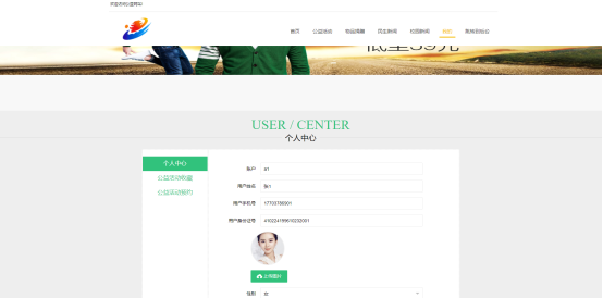 个人中心,在个人中心页面可以查看用户账号、用户姓名、密码、性别、联系电话等如图5-20所示。