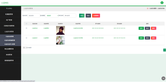 图5.2 公益活动管理页面