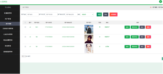 如图5.1显示的就是用户管理页面,此页面提供给管理员的功能有:新增用户,修改用户,删除用户。