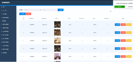 管理员可以对厨房设备进行添加,修改,删除,查询操作。下图就是厨房设备管理页面。
