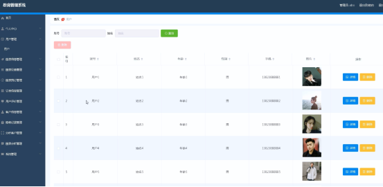 管理员可以修改,删除用户信息。下图就是用户信息管理页面。